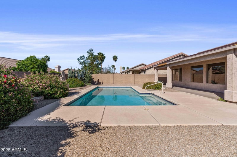 Listing details for 5121 Wallace Ave, Scottsdale, AZ 85254 : Beautifully updated single-level pool home in Scottsdale's coveted 85254 zip code, featuring a split floor-plan, dedicated office, and upgrades throughout. Perfectly positioned in a quiet and private setting, this refreshed residence offers a Scottsdale address with Phoenix municipal services. The home offers 3 bedrooms, 2 bathrooms, and a dedicated office/den arranged within a desirable split floor-plan, providing privacy for the primary suite while maintaining an easy flow for everyday living and entertaining. Recent improvements create a crisp, modern feel throughout the home, including a brand-new roof (2026), new flooring (2026), and fresh interior paint (2026), making the property truly move-in ready. The backyard offers a quiet and private retreat with a sparkling in-ground pool, perfect for relaxing afternoons or entertaining under Arizona's endless sunshine. Additional highlights include a 2-car garage and low HOA dues. Ideally located just minutes from some of the Valley's most desirable lifestyle destinations including Kierland Commons, Scottsdale Quarter, Desert Ridge Marketplace, and Paradise Valley, offering exceptional dining, shopping, and entertainment. A rare opportunity to own a beautifully updated home in one of the valley's most sought-after locations.