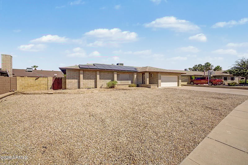 Listing details for 5122 Royal Palm Rd, Glendale, AZ 85302 : Prepare to fall in love with this adorable 3-bedroom home adorned with paid-off solar panels for energy savings! Newly updated interior boasts wood-look flooring, fresh paint, ceiling fans, dual pane windows, abundant natural light, and an inviting living room ideal for receiving guests. Desirable great room, enhanced by a wood-burning fireplace, is the perfect spot for hosting lively gatherings. The kitchen displays stainless steel appliances, a walk-in pantry, and crisp white cabinets. Venture to the large primary bedroom, offering sliding glass doors leading to the back patio, a private bathroom, and a walk-in closet. Wonderful backyard impresses with a covered patio, two storage sheds, and a refreshing pool, ideal for year-round enjoyment. This gem is ready for you to move in.