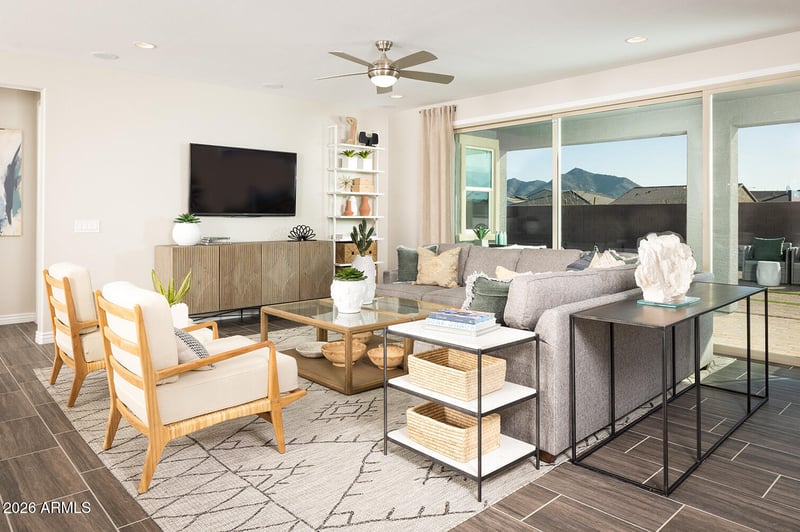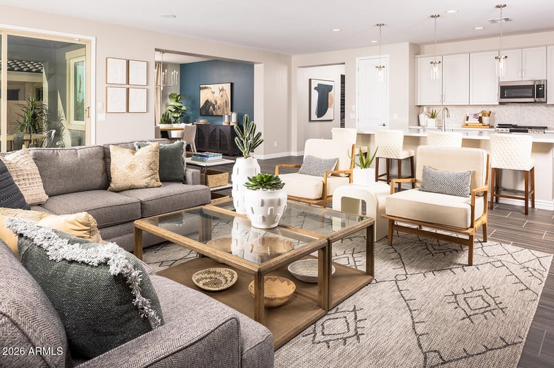 Listing details for 5127 Top Hand Trl, Laveen, AZ 85339 : Welcome to this beautifully appointed home offering 3 bedrooms plus a dedicated office/den, 3 bathrooms, and both a 2-car garage and RV garage, perfectly blending functionality with style. The paver driveway and covered front porch provide inviting curb appeal, while inside, custom interior paint enhances the bright, open layout. The open floorplan flows effortlessly into the kitchen, which features stainless steel appliances, a large Quartz-topped island ideal for gathering, and a dining area conveniently located just off the kitchen. The spacious primary suite serves as a private retreat with an ensuite bathroom showcasing a dual-sink vanity and a separate soaking tub and walk-in shower. Step outside to the backyard, where a covered patio and putting green create the perfect setting... for relaxation and entertaining. This home offers a rare combination of versatile living spaces, upscale finishes, and exceptional garage capacity ideal for both everyday living and weekend adventures.
