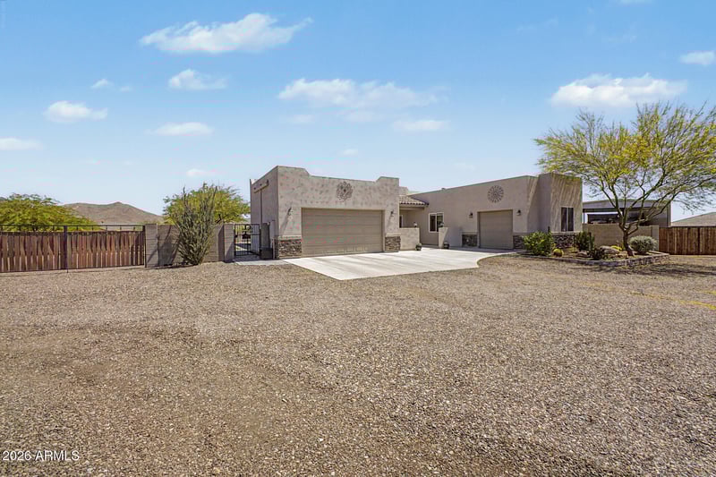 Listing details for 514 Morse Dr, Phoenix, AZ 85086 : Situated on a full acre in North Phoenix, this beautifully upgraded single-level home offers space, function, and outdoor living at its finest. The property features 2 RV gates & covered RV parking with 50 amp hookups, plus a 3-car garage with epoxy flooring. Inside, enjoy quartz countertops, wood-look tile flooring, stainless steel appliances, a large kitchen island, and an open great room layout perfect for entertaining. The spacious primary suite includes a large soaking tub, custom tiled walk-in shower with seamless glass, and direct access to the laundry room. Step outside to a brick paver patio with extended walkways, outdoor kitchen with BBQ and smoker, gazebo with mounted TV, wood-burning fire pit, and a private above-ground spa retreat. Enjoy the mountain views from nearly angle.
