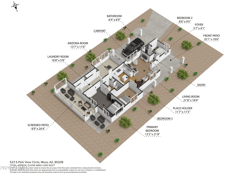 Additional highlights include an indoor laundry room with washer and dryer included, ample interior storage space, and gas available on the property. Step outside to enjoy the screened-in patio or unwind on the front porch seating area--ideal for enjoying Arizona's beautiful weather.