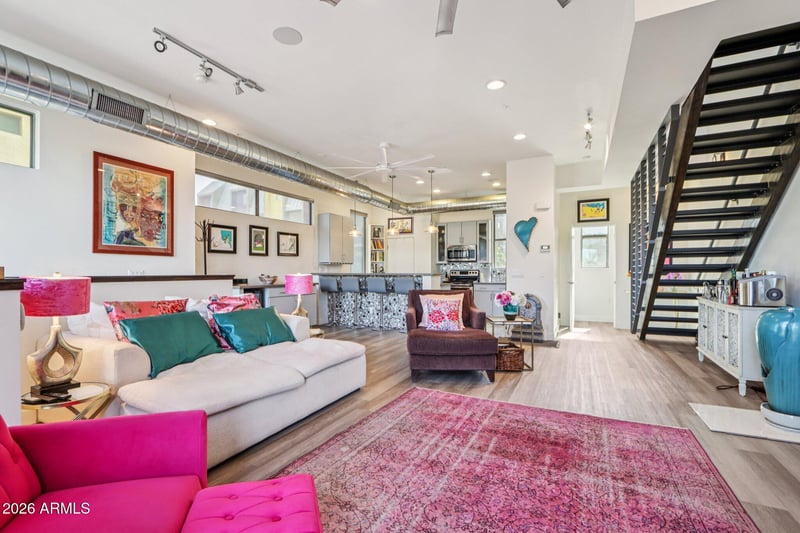 Listing details for 524 Ames Pl, Phoenix, AZ 85004 : This contemporary multi-level townhome is the epitome of style and urban living in the heart of Downtown Phoenix. Designed for both comfort and sophistication, this stunning residence features three spacious bedrooms -- including a luxurious primary suite on the top floor with sweeping city and mountain views -- along with three full bathrooms and an additional half bath for guests. The thoughtfully designed floor plan offers a large two-car garage with ample storage and a private outdoor space perfect for entertaining or relaxing under the Arizona sky. Recent upgrades include brand-new flooring and a whole-home water filtration system, adding modern convenience to an already exceptional home. Located just two blocks from Roosevelt Row, you'll enjoy immediate access to some of Phoenix's best dining, shopping, art galleries, and nightlife. Experience the vibrant energy of First Fridays, farmers markets, concerts, and year-round festivals right outside your door. The home is also in close proximity to the new University of Arizona medical school campus currently under construction and the newly redesigned Arizona Center. Opportunities like this in the coveted Downtown Phoenix market are rare. Don't miss your chance to own a beautifully updated home in one of the city's most dynamic and sought-after neighborhoods