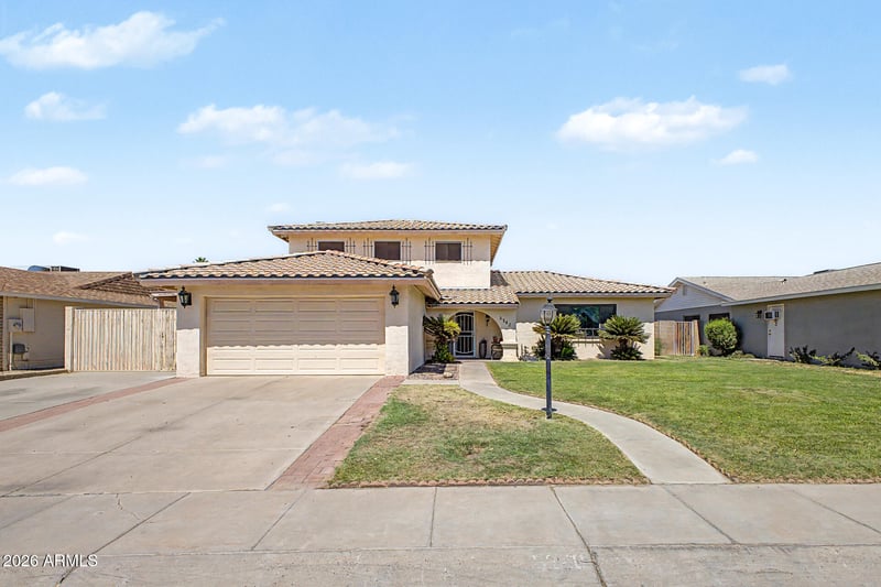 Listing details for 5240 Garden Dr, Glendale, AZ 85304 : Incredible 2 story block home in beautiful Glendale w/ N/S exposure, No HOA, RV gate, & charming curb appeal. Features include over 2,100 sq ft, 3 beds/2.5 baths plus bonus room conveniently located downstairs that can be extra bedroom, office, or play room. Other features include 2 car garage, wood burning fireplace in family room, 1 year old water heater, & owned water softener. Interior boasts vinyl flooring & shutters throughout. The kitchen is equipped with granite counters, upgraded soft close cabinets w/ sliding pull out drawers, & SS appliances. Master suite offers his & her closets, a private bathroom w/ dual-vanity w/ medicine cabinets behind mirrors, & a tiled shower. The backyard features a covered wrap-around patio, a diving pool, and pavers ideal for entertaining. See today!