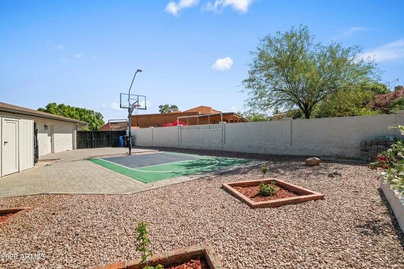 Listing details for 529 Wood Dr, Phoenix, AZ 85029 : Tucked at the end of a quiet cul-de-sac in Heritage Highlands, this beautifully updated home offers privacy, views, and an exceptional outdoor lifestyle. Situated on a premium lot backing to a common area with no neighbors behind, the backyard is truly a standout-designed for both relaxation and recreation. Enjoy a heated pool and spa, sport court, professional landscaping, and mature fruit trees-all creating a private oasis you'll never want to leave. Inside, the home features a split floor plan, fireplace, and thoughtful upgrades throughout, including shutters and sun shades for added comfort and efficiency. HOA includes security, street, and common area maintenance. A rare opportunity to own a private retreat in an exclusive North Phoenix enclave.