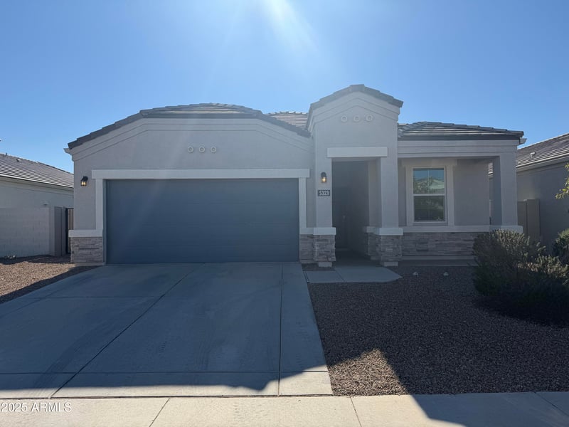 Listing details for 5323 Stargazer Pl, Laveen, AZ 85339 : Near new construction without the wait! This 2021 DR Horton single-story home in Laveen, AZ offers 1,881 sq ft of open-concept living with modern finishes throughout. The kitchen features granite countertops, a large island, and walk-in pantry, opening seamlessly to the main living area perfect for entertaining. Tile flooring throughout the main living spaces adds style and easy maintenance, with carpeted bedrooms for comfort. The spacious primary suite includes a walk-in closet and private bath. Situated on a 5,750 sq ft lot with low-maintenance rock landscaping, plus a 2-car garage and HOA community. Ideal for a first-time buyer or growing family wanting a newer home without builder delays this one is a must-see!