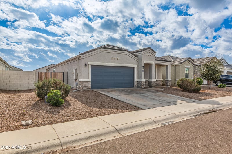 Listing details for 5323 Stargazer Pl, Laveen, AZ 85339 : Near new construction without the wait! This 2021 DR Horton single-story home in Laveen, AZ offers 1,881 sq ft of open-concept living with modern finishes throughout. The kitchen features granite countertops, a large island, and walk-in pantry, opening seamlessly to the main living area perfect for entertaining. Tile flooring throughout the main living spaces adds style and easy maintenance, with carpeted bedrooms for comfort. The spacious primary suite includes a walk-in closet and private bath. Situated on a 5,750 sq ft lot with low-maintenance rock landscaping, plus a 2-car garage and HOA community. Ideal for a first-time buyer or growing family wanting a newer home without builder delays this one is a must-see!