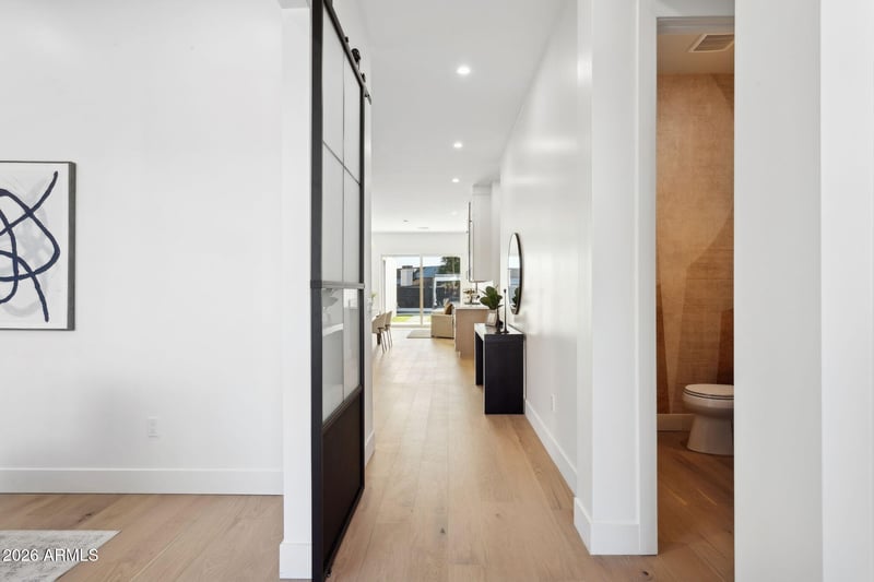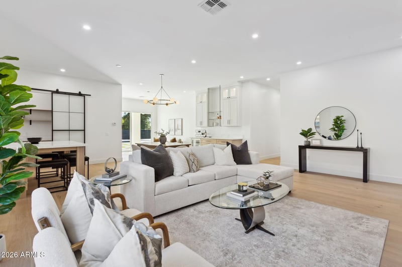 Listing details for 5335 Kelton Ln, Scottsdale, AZ 85254 : Brand-new luxury custom home featuring five bedrooms and three-and-a-half bathrooms across 3,000 square feet on a one-third-acre lot with no HOA. Designed for both comfort and entertaining, the home offers wood floors throughout and open, light-filled living spaces. The resort-style backyard is newly completed with a pool, pickleball court, and barbecue island, creating a private oasis ideal for year-round enjoyment.