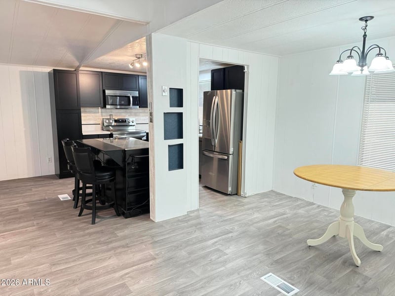 Listing details for 535 Alma School Rd #113, Mesa, AZ 85210 : Beautiful inside and out! This remodeled home has it all! Updates include: Newer A/C, 2 new dual-pane windows, 5 windows with 5% ceramic heat shield tint, roof, and fresh exterior paint. Inside, wood-plank-look vinyl floors throughout complement a gorgeous two-tone palette. The designer kitchen features upgraded soft-close cabinetry, attractive quartz countertops, an island with built-in electric, and top-of-the-line stainless steel appliances. The electrical and plumbing systems have been updated, giving you peace of mind. The primary suite features a fully renovated bathroom with a custom Delta ProCrylic shower, a stylish vanity, a mirror, and modern fixtures. Add in upgraded lighting, multi-function ceiling fans w/ remotes, and modern finishes, and this home is ready for move-in!