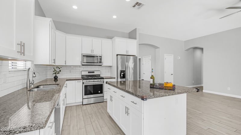 Listing details for 5381 Folley St, Chandler, AZ 85226 : Amazing Single level Home With Three Bedrooms And A Large Den Office. Large Formal Living Room And Dining Area With Double Door Entry To The Den. Family Room Is Open To The Kitchen With Island And Breakfast Nook. Granite Counters Stainless Steel Refrigerator And Gas Range Oven. Ten Foot Ceilings Through Out Home. Wood Like Plank Tile Flooring And Brand New Carpet In The Bedrooms. The Ten Foot Ceilings And Eight Foot Exterior Doors Bring A Custom And Spacious Feel. The Primary Bedroom Has A Very Spacious Bathroom Suite With Walk In Closet, Double Sinks And A Huge Walk In Shower. The Interior Has Just Been Painted. The Rear Yard Features An Amazing Covered Patio With Ceramic Tile With Additional Paver Patio, Huge Turf Area And Lush Foliage Borders. New Gas Water Heater And Newer HVAC Unit This Home Is Located Just Two Miles From Chandler Fashion Center Mall With Class A Shopping And Top Restaurants And Walking Distance To Intel. This Community Is Nestled In A Wonderful Community With Top Schools, A Walking Path Along The Green Belts And Parks.