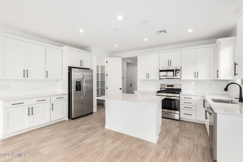 Listing details for 5411 Royal Palm Rd, Glendale, AZ 85302 : Welcome home! Minutes from downtown Glendale and a short distance from Westgate. This professionally designed home includes amazing curated features both inside and out. Inside, your new kitchen has tons of storage space, quartz countertops, stainless-steel appliances, a walk-in pantry and generous island. The cabinets have upgraded crown molding for an elegant finish. You get the best of both worlds here in Seasons at Trevino I where all of our homes are equipped with both gas and electric utilities. The luxurious primary bedroom features a generous attached bathroom and a walk-in closet. Elegant pavers out front complete the look with your new front yard landscaping.