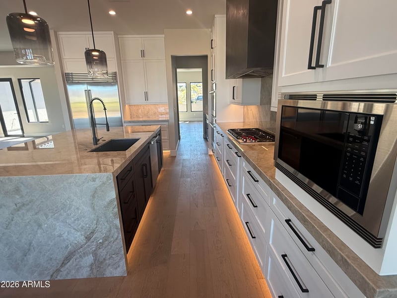 Listing details for 544 Amber Sun Dr, Phoenix, AZ 85086 : Pictures are of Home Built by the builder & Sold nearby in Dec 2024. Lot split is nearly complete. Nestled on a sprawling 1.019-acre canvas of potential, this brand-new 2025 construction home is a masterpiece waiting for your personal touch. With 3,700 square feet of luxurious living space, this modern abode offers the perfect blend of comfort and sophistication. Need space for your toys? Look no further! This home boasts a 4-car garage, ensuring ample room for all your vehicles and adventure gear. Step inside and be greeted by today's finest finishes. Adorned with elegant quartz countertops, sleek tile wood-like floors, and chic fixtures throughout, this home exudes contemporary charm at every turn. Retreat to one of the four spacious bedrooms, each offering serene sanctuaries for rest and relaxation. The master suite is split from the other bedrooms offering privacy that features a large walk in shower, tub and dual sinks with quartz counters and a oversized walk-in closet. Entertain with ease in the open-concept living space, where the gourmet kitchen serves as the heart of the home. Equipped with top-of-the-line appliances and ample counter space, culinary delights are just waiting to be created. Outside, the possibilities are endless. With a full-acre canvas at your disposal, let your imagination run wild. Whether you dream of lush gardens, a sparkling pool oasis, or a tranquil outdoor retreat, the choice is yours. Rest easy knowing that a sturdy block wall surrounds the property, providing privacy, security and seclusion. Still time to select all of your finishes!!