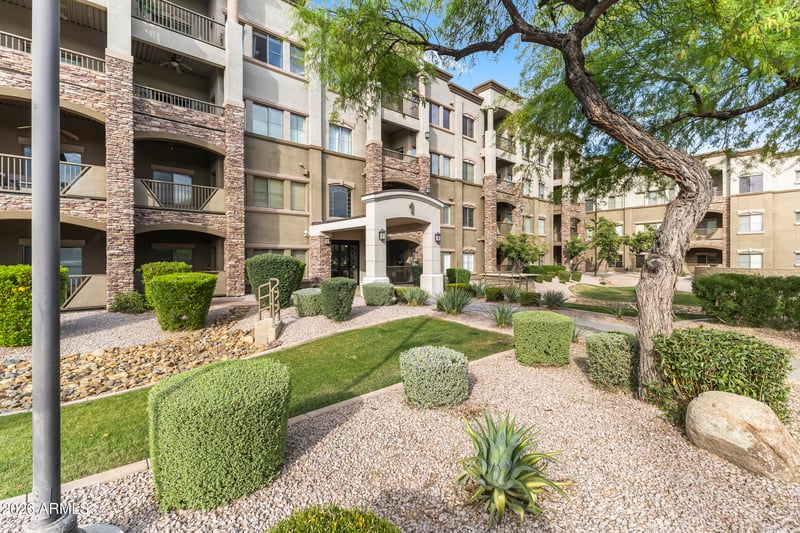 Listing details for 5450 Deer Valley Dr #1002, Phoenix, AZ 85054 : Toscana of Desert Ridge! Indulge in the comfort, convenience, and resort-style living of this light and bright corner, ground-floor 2-bedroom, 2-bath Milano condo, just steps from the pool and packed with upgrades! Featuring a split-bedroom layout, built-in office desk, and 2 parking spaces, this home boasts black stainless steel appliances, stackable washer/dryer tower, limestone flooring, and engineered bamboo floors in the bedrooms. Enjoy a gas fireplace, plantation shutters, granite counters, updated cabinets with hardware, LED recessed lighting. The Toscana community offers an unmatched lifestyle with lush grounds, a guard-gated entry, 3 heated pools, 3 clubhouses, 2 modern gyms, yoga/stretching studio, business center, teen activity room, walking paths, BBQs, and electric car... chargers. Steps from 60+ restaurants, shopping, entertainment, the Desert Ridge Mall, and Mayo Clinic, plus nearby golf at Wildfire Golf Club and easy access to I-101 and I-51. Enjoy proximity to City North's new urban core, Scottsdale events like Barrett-Jackson, Phoenix Open, Arabian Horse Show, and more--where every day feels like a vacation!