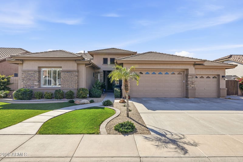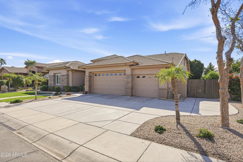 Listing details for 547 Parkview Dr, Gilbert, AZ 85295 : Welcome to this beautifully upgraded & thoughtfully remodeled basement home offering 5 BR + private office/den, 3.5 bath, ideally situated on a generous N/S-facing interior lot in one of Gilbert's most desirable gated, single-level communities. This rare floor plan blends timeless design, modern upgrades & exceptional functionality. From the moment you arrive, the home impresses w/lush landscaping & brick-accent elevation. Recent ext/int paint, brand-new roof & recently replaced HVAC systems provide striking curb appeal & long-term peace of mind. Inside, soaring, vaulted & 10' flat ceilings create an open feel, enhanced by recessed lighting, plantation shutters, custom window coverings and ethernet wiring. The well-designed layout offers formal LR & DR--ideal for gatherings--plus... a welcoming FR w/cozy gas fireplace & surround sound. The chef-inspired kitchen features a spacious island w/breakfast bar, upgraded cabinetry w/under-cab lighting, newer granite counters, SS appliances, dual pantries, RO system, water softener & stub for gas cooking. The main-level primary suite offers a peaceful retreat w/ access to the expansive cov'd patio. Two add'l BRs w/WI closets & private office/den w/separate front entry provide flexible space for remote work or guests. Downstairs, the finished basement expands living space w/massive game/media rm, 2 BRs, full BA & abundant storage ideal for multi-gen living or an entertainment wing. Step outside through the new 8' sliding glass door to a resort-style backyard oasis featuring resurfaced cool deck, outdoor kitchen w/SS grill & fridge, custom lighting & new pebble-tec pool finish w/updated tile. New pool heater/chiller & paver patio complete the ultimate AZ lifestyle.