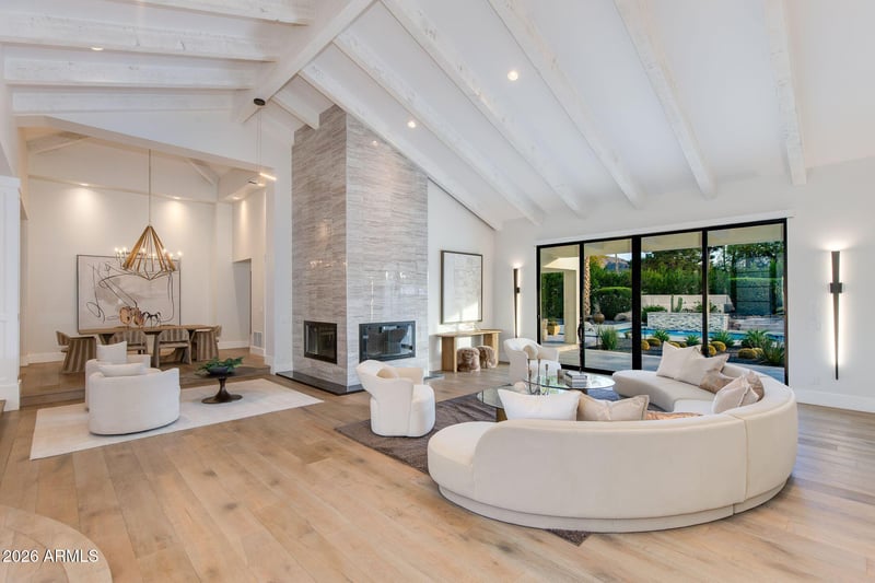 Listing details for 5501 Sanna St, Paradise Valley, AZ 85253 : Located on a quiet and charming street, this move-in-ready residence blends exceptional quality and thoughtful design with Arizona's signature indoor-outdoor lifestyle. Originally reimagined in a comprehensive 2018 remodel, the home has been further elevated with quality upgrades, reflecting a meticulous attention to detail throughout. Just beyond the entry, a grand living room with soaring ceilings and a dramatic double-sided fireplace opens seamlessly to the outdoors, creating the perfect setting for both intimate evenings and entertaining.
