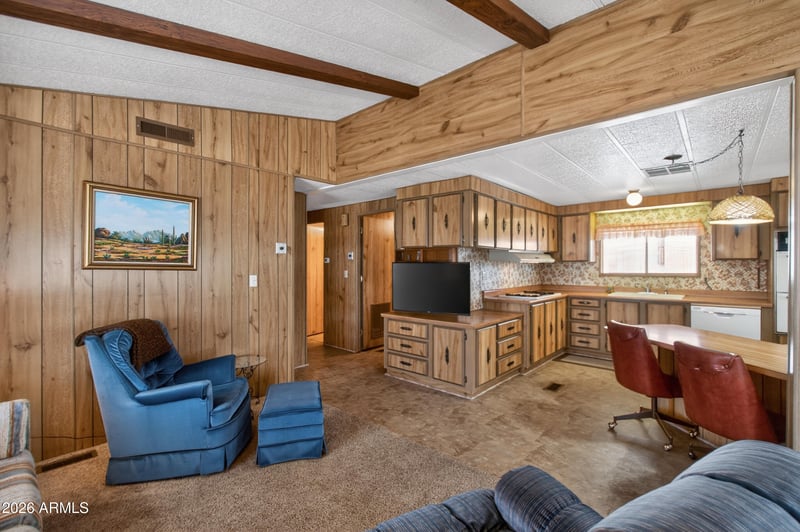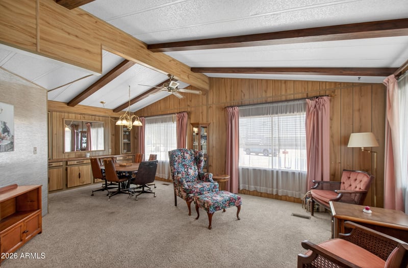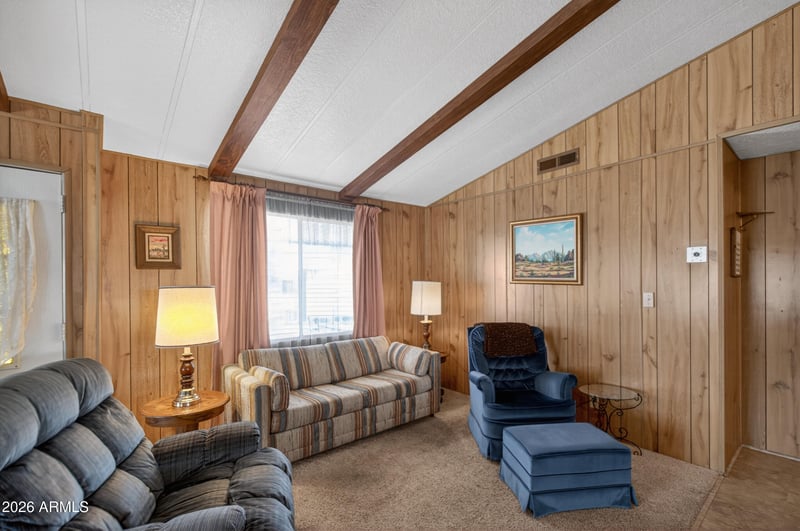 Listing details for 5504 Arcadia Ave, Mesa, AZ 85206 : Multiwide manufactured home in a desirable 55+ community and you own your land! Built in 1982, this well-maintained 2 bed, 2 bath home features a large open floor plan with a spacious kitchen. The primary suite offers a private bath with separate shower and garden tub. The home has been very well cared for over the years. Exterior highlights include a large covered patio, long driveway with covered parking, storage shed, and a generous lot with mature citrus trees. Community amenities include a clubhouse, heated pool & spa, shuffleboard, and organized events. Eligible for government and conforming financing--don't miss this opportunity