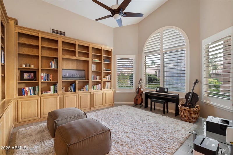 Listing details for 5508 Muriel Dr, Scottsdale, AZ 85254 : Soaring ceilings, sun-dappled living areas, a cozy basement, and a resort-like backyard. It has it all! Enjoy the living, dining, and family room, all open to one another, with a fireplace. The kitchen, an ideal culinary space, shares a breakfast bar and an eat-in area. The generously sized Primary Suite has entry to the rear yard and a bathroom showcasing a separate tub and shower, double vanities, and a super-sized closet. Two secondary bedrooms are split from the Primary Suite. The cozy basement, with its great room, two bedrooms, bathroom, and bonus/exercise room, is perfect for a playroom, crafting, guest rooms, etc. The to-die-for rear grounds dazzle with a shimmering pool, sunning decks, designer grass, and a BBQ grilling area. Perfect for lounging...maybe an afternoon nap!