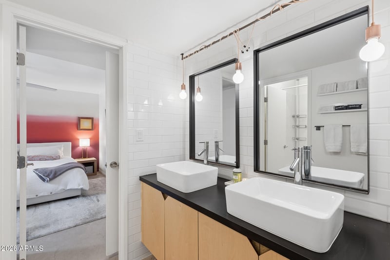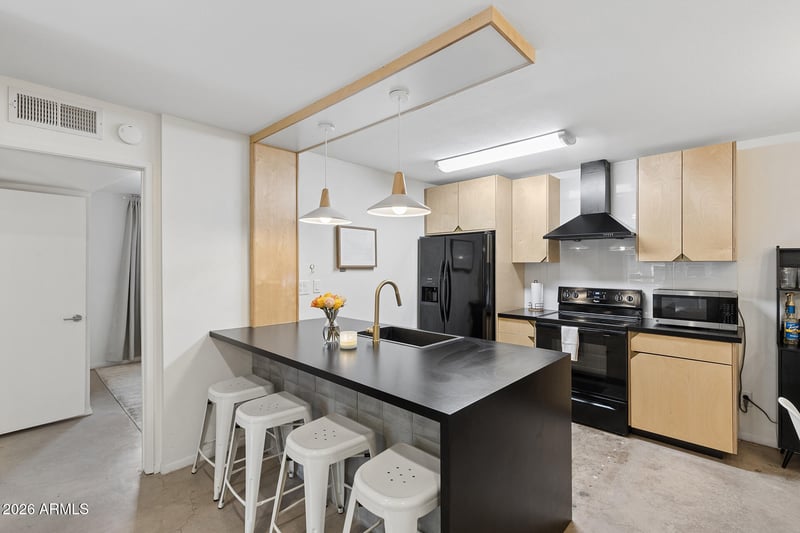 Listing details for 5525 Thomas Rd #R9, Phoenix, AZ 85018 : Welcome to this one-of-a-kind, design-forward condo in the Arcadia area -- where modern minimalism meets thoughtful craftsmanship. This rare corner unit was curated by a local designer/builder, featuring custom European cabinetry, handmade concrete tile, and a striking steel fireplace that anchors the space with architectural character. Clean lines and chic concrete flooring create a seamless, modern aesthetic, while stylish countertops and intentional finishes elevate everyday living. Every detail has been carefully considered, making this home as functional as it is visually stunning. Perfectly positioned on the edge of Scottsdale, you're just minutes from some of the Valley's best--dining hotspots, Papago Park, Camelback Mountain, the Phoenix Zoo, Spring Training, and Scottsdale Fashion Square. The community offers resort-style amenities including a heated pool and spa, BBQ grills, fitness equipment, laundry facilities, and even a ping pong table for a little added fun. Plus, enjoy the convenience of two parking spaces, including one covered spot. Previously operated as a successful rental, this property offers flexibility for a variety of buyers--whether you're looking for a primary residence, lock-and-leave, or investment opportunity.