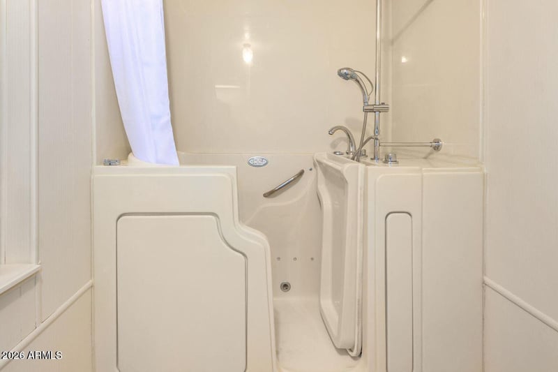 Listing details for 5546 Player Pl, Mesa, AZ 85215 : Enjoy true single-level living with no steps or thresholds anywhere in the home. Brand new flooring flows seamlessly from room to room, creating a clean and modern feel throughout. Recent updates include new faucets, lighting, paint, flooring, and a new roof--move-in ready and maintenance-free! The SafeStep walk-in Jacuzzi tub in the primary suite offers luxury and convenience, featuring multiple jets, a rain shower head, built-in lighting, music, and even a remote control for ultimate relaxation.