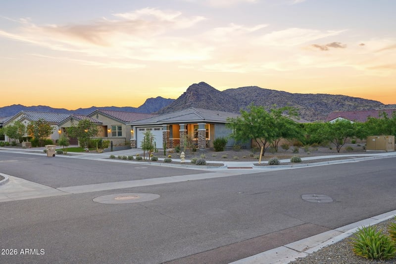 Listing details for 5597 206th Ave, Buckeye, AZ 85396 : Welcome to this stunning upgraded Sawgrass floorplan by William Ryan Homes, nestled in the highly sought-after Verrado Victory community! Stunning White Tank Mountain views! This 2-bedroom plus den residence features an open great room layout accented by elegant plantation shutters. The gourmet kitchen is a chef's dream, boasting shaker cabinetry, a gas cooktop, wall ovens, a butler's pantry & a large island. The private master retreat offers a dual-sink vanity & an oversized tiled shower with bench seating. Guests will appreciate the spacious 2nd bedroom with a walk-in closet & en-suite bath. Outside, sliding doors lead to a covered patio & a landscaped backyard with no rear neighbors!!! Complete with a large laundry room and a 2-car garage, this home is the ultimate desert sanctuary