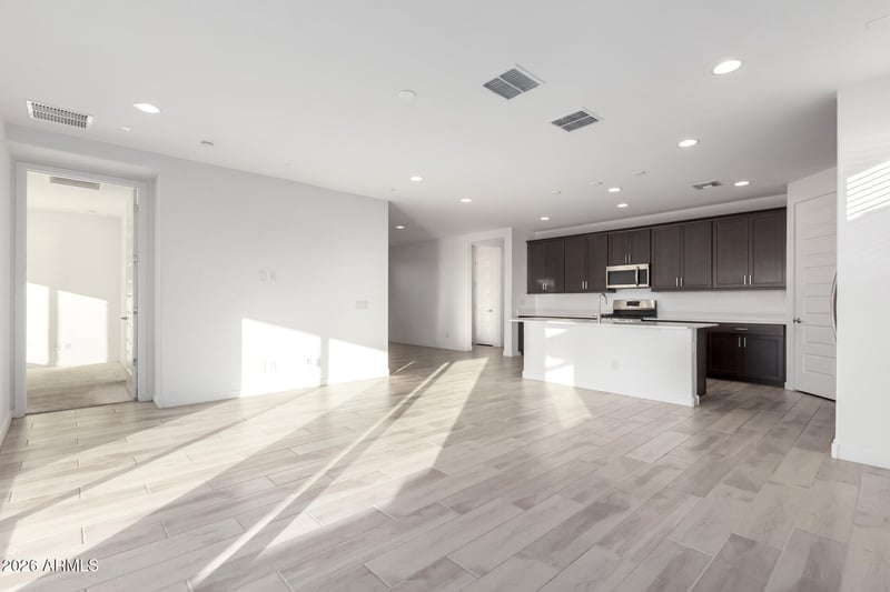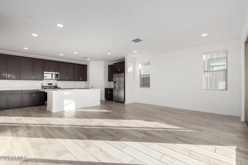 Listing details for 5630 26th Ln, Phoenix, AZ 85041 : Fantastic opportunity to own this lovely 4-bedroom home in Liberty just across from the park! Built in 2024, this home features a zero maintenance landscape in the backyard. The gated community is full of energy, with five parks, basketball courts, cornhole, and year-round events like movie nights and holiday celebrations. Just minutes from shopping, dining, and South Mountain's incredible hiking trails AND I-17 freeway is just 8 minutes away. Upon walking in the front door, you're welcomed by an inviting open layout with wood-look flooring, recessed lighting, and convenient backyard access. The well-appointed kitchen features sleek quartz counters, crisp white cabinetry, stainless steel appliances, and a peninsula with a breakfast bar for casual meals.