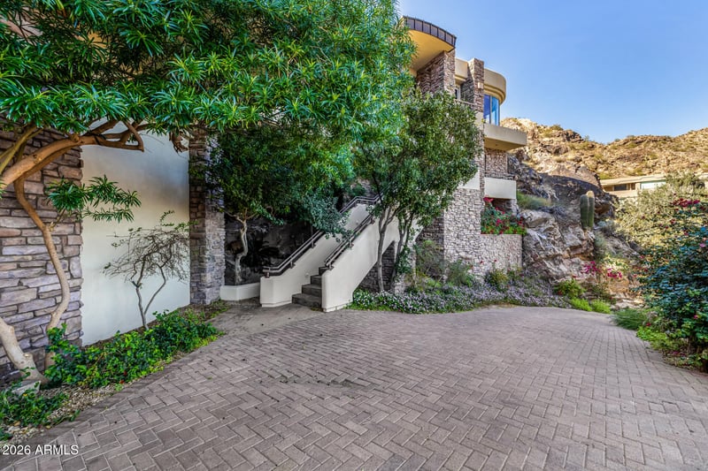 Listing details for 5676 Cheney Dr, Paradise Valley, AZ 85253 : Perched atop Mummy Mountain in the guard-gated La Place du Sommet, this Salcito-built estate is a masterwork of organic luxury, blending rich wood, copper, and stone into the rugged desert landscape. Spanning 1.5 acres, the residence offers unobstructed panoramic views of the McDowell and Superstition Mountains through floor-to-ceiling glass. The interior is defined by refined craftsmanship, featuring a mahogany library with stained glass, a subterranean rock-walled wine cellar, and a gourmet kitchen equipped with Viking and SubZero appliances. With five bedrooms--including a serene primary retreat--an infinity-edge spool set against natural rock formations, and modern essentials like an elevator and EV-ready garage, this home offers a rare, elevated lifestyle in the heart of Paradise Vall Perched atop Mummy Mountain in the guard-gated La Place du Sommet, this Salcito-built estate is a masterwork of organic luxury, blending rich wood, copper, and stone into the rugged desert landscape. Spanning 1.5 acres, the residence offers unobstructed panoramic views of the McDowell and Superstition Mountains through floor-to-ceiling glass. The interior is defined by refined craftsmanship, featuring a mahogany library with stained glass, a subterranean rock-walled wine cellar, and a gourmet kitchen equipped with Viking and SubZero appliances. With five bedrooms--including a serene primary retreat--an infinity-edge spool set against natural rock formations, and modern essentials like an elevator and EV-ready garage, this home offers a rare, elevated lifestyle in the heart of Paradise Valley.