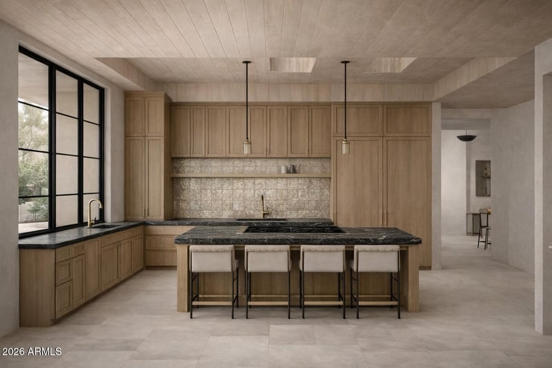 Listing details for 5709 Harding Dr, Paradise Valley, AZ 85253 : A masterful collaboration between two celebrated interior design studios and PHX Architecture, this warm modern estate is defined by intentional design, natural materiality, and elevated craftsmanship. Thoughtfully designed to harmonize architecture with landscape, the residence is anchored by hand-applied plaster finishes, expansive white oak detailing, and an extraordinary use of natural stone--each element selected for both beauty and longevity. Clean lines are softened by warm textures, while soaring 11-foot ceilings and 12 strategically placed skylights flood the home with natural light. A natural connection to the resort-caliber grounds creates an atmosphere that feels both refined and deeply inviting, designed for grand entertaining and quiet retreat. The floor plan is equally considered, offering a private owner's wing designed as a true sanctuary, intentionally set apart for privacy and quiet, with spa-inspired bath spaces finished in natural stone. The guest wing features two master-sized suites, each complete with its own living room--ideal for extended stays or multigenerational living. A dedicated wellness studio provides the perfect space for Pilates, yoga, or a private gym, further reinforcing the home's retreat-like sensibility.