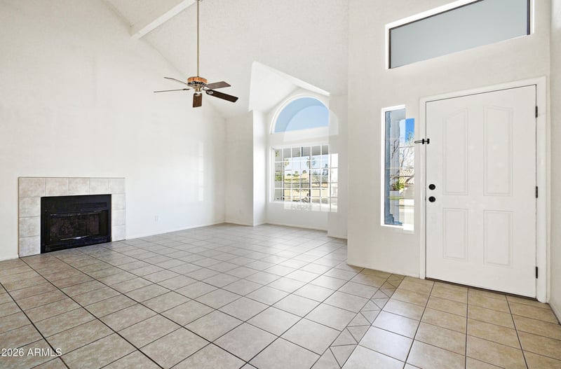 Listing details for 5729 Butler Dr, Chandler, AZ 85226 : Beautiful two-story home featuring 4 spacious bedrooms and 3 full bathrooms. This property offers a 2-car garage with an extended driveway for additional parking. Inside, you'll find tile flooring throughout the main living areas and cozy carpet in the bedrooms and on the stairs. The kitchen is equipped with white cabinetry, granite countertops, and stainless steel appliances, perfect for everyday living and entertaining. Enjoy relaxing evenings by the fireplace or step outside to a fenced backyard with a covered patio ideal for outdoor gatherings and year-round enjoyment.