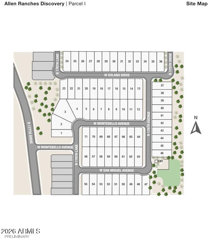 Listing details for 5763 176th Ave, Litchfield Park, AZ 85340 : What's Special: No Rear Neighbors | Close to Park | Dedicated Study | Covered Patio. New Construction - July Completion! Built by America's Most Trusted Home Builder. Welcome to the Harlow at 5763 N 176th Avenue in Allen Ranches Discovery! From the moment you step inside this new home, tile flooring throughout the main living area sets the tone for a bright, polished feel you will love. The foyer leads you past the study and powder room, creating an ideal setup for working from home or hosting guests. Further inside, the open kitchen flows seamlessly into the casual dining area and great room, giving you a welcoming space to gather and unwind. Step outside to enjoy Arizona sunshine from your outdoor living area, perfect for morning coffee or evening relaxation. MLS#7007263 The primary suite offers a calm retreat with double sinks and a walk-in closet, while three secondary bedrooms, a full bathroom, laundry room, and garage entry complete this thoughtful floor plan. Allen Ranches in sunny Litchfield Park, AZ offers fun and adventure with a playground, sparkling pool, basketball court, and the thoughtful design of a master-planned community. With quick access to Loop 303, you're just minutes from lush parks, Harkins Theatres, Barnes & Noble, and plenty more nearby conveniences. Additional Highlights Include: 36"white cabinets, satin nickel hardware, and GE gas appliance package.