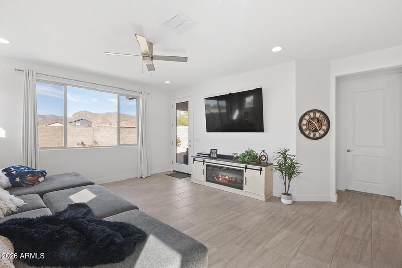 Perfectly positioned with a large park right out front and a private backyard showcasing breathtaking west-facing views of the White Tank Mountains, this 3 bed, 2 bath home offers scenery and serenity in every direction.