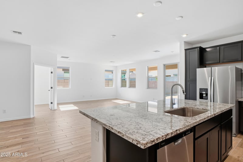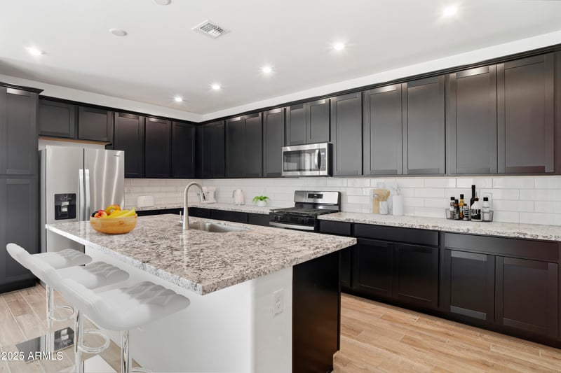 Listing details for 5862 193rd Ave, Litchfield Park, AZ 85340 : This spacious single story Irwin home showcases 3 beds, study, 2.5 baths, 9-ft ceilings, luxury wood plank-style tile flooring throughout, with cozy carpet in the bedrooms. The Entertainer's kitchen is a true standout, boasting a spacious layout, stainless steel appliances generously sized island, and a designer backsplash--ideal for cooking, entertaining, or simply enjoying your morning coffee. The private primary suite offers a peaceful retreat with backyard views and a generous walk-in closet. A 3-car garage provides ample space for vehicles, storage, or hobbies. It's on a corner lot that is across from a park. This home is ready now.