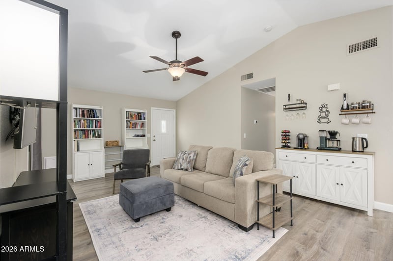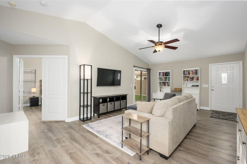 Listing details for 590 Kyle Dr, Gilbert, AZ 85296 : This charming 3 Bed 2 Bath home blends modern updates with everyday comfort. The interior features easy-care vinyl plank flooring and fresh white cabinetry with contrasting black hardware that create a bright, timeless look. Updated bathroom vanities/lights/fixtures add a touch of style and function. The easy maintenance backyard is perfect for relaxing or play, with lush grass and an automatic sprinkler system added 3 years ago. Conveniently located near shopping, dining, and freeway access, this home offers comfort, style, and convenience in a great Gilbert neighborhood! Listing Agent is related to Sellers.