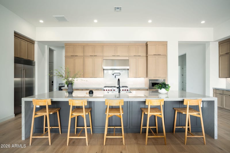 Listing details for 5905 Silver Sage Ln, Cave Creek, AZ 85331 : Built in Fall of 2025, this Kartchner model in Sonoran Trails offers a rare opportunity to step into a home that feels brand new--without sacrificing time, energy, or design vision. From the moment you enter, soaring ceilings, walls of glass, and wide-plank white oak floors create a sense of light, scale, and effortless sophistication. The kitchen is the centerpiece--both functional and beautiful--anchored by a statement island that naturally becomes the gathering place. Outfitted for entertaining and everyday living alike, it flows seamlessly into the great room, where oversized sliding glass doors open to a true indoor-outdoor lifestyle that defines Arizona living. The primary suite is a private escape--designed for quiet mornings and relaxed evenings--with a spa-inspired bath, soaking tub, and an expansive walk-in closet. A separate guest suite offers the kind of flexibility today's buyers expect, with its own living space, bedroom, and full bath--ideal for hosting, multi-generational living, or creating a private retreat within the home. This is what modern luxury looks like--clean lines, thoughtful design, and a home that lives as beautifully as it looks. All of it, without the wait.