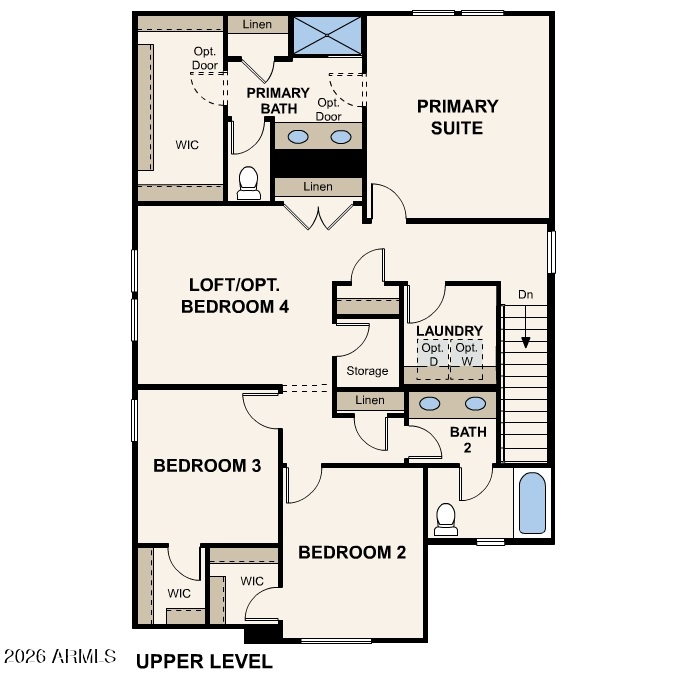 Listing details for 5935 Sideoats Way, San Tan Valley, AZ 85144 : Discover the perfect balance of space and style in the Oak Plan in the Highlands Collection at Skyline Village. Enter through a welcoming foyer shared with the stairway, leading to the primary living spaces that span the back of the home and overlook the backyard. A powder room is tucked beneath the stairs for convenience. On one side, the kitchen with a corner pantry flows into the dining area, while the great room on the other side is bathed in natural light. Upstairs, a central hallway introduces the laundry room and a versatile loft, perfect for a second living space or an optional fourth bedroom. The primary suite stretches across the back of the home, offering a private retreat with a spa-inspired bath and walk-in closet.