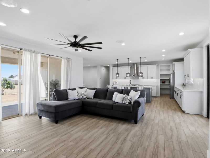 Listing details for 5995 Rolling Ridge Rd, San Tan Valley, AZ 85140 : No HOA, 1-acre lot, and room for your toys or horses, this home offers the space and flexibility today's buyers are looking for, complete with a private gated entrance and mountain views. The interior features 4 beds, 3 baths, tile flooring throughout, and an open-concept layout designed for both everyday living and entertaining. The kitchen is equipped with granite countertops, SS appliances, and a walk-in pantry for added convenience. The primary suite provides a relaxing retreat with a freestanding soaking tub, walk-in shower, & a well-sized walk-in closet. A secondary bedroom includes its own en-suite bathroom, ideal for guests or flexible living arrangements. The front yard is finished with turf and paver landscaping for low-maintenance curb appeal. Additional features include an EV charging outlet and pre-wiring for surround sound in the great room and patio. The backyard is a blank canvas ready for your vision, whether that's a pool, outdoor living space, or more. With an RV gate and ample space to bring your toys, RVs, or recreational vehicles, plus a horse property designation, this property offers versatility and room to grow. Enjoy privacy, open space, and the flexibility to create your ideal outdoor lifestyle, with convenient access to nearby grocery stores and shops.