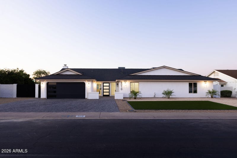 Listing details for 6010 Greenway Ln, Scottsdale, AZ 85254 : THE INVESTOR'S UNICORN: Rare NO HOA status combined with a pre-prepared Scottsdale Airbnb application. Proforma available for STR performance. PRIVATE SPORTS CLUB VIBES: The ultimate backyard amenity package featuring a Pickleball mini-court, custom putting green, and a brand-new heated pool for year-round revenue. DUAL PRIMARY SUITES: Thoughtfully designed with 5 Bedrooms and 4.5 Baths, including two massive Primary Suites, the #1 requested layout for luxury group rentals and multi-gen living. CHEF'S CULINARY SHOWPIECE: High performance Miele appliance suite, custom soft-close dovetail cabinetry, and sleek Quartz countertops throughout. THE ''SECRET'' PANTRY: A hidden, oversized walk-in pantry that blends seamless high design with massive storage capacity. DESIGNER AESTHETICS: Modern engineered hardwoods flow through every room, accented by premium designer hardware and custom venetian plaster fireplace wall. EXTERIOR EXCELLENCE: Massive curb appeal with custom paver driveway, elegant front entry, and professional Epoxy garage floors. MECHANICAL PEACE OF MIND: Turn-key and worry-free with a Brand-New Roof, one New A/C unit (plus one refurbished), and all-new infrastructure. SPA-INSPIRED BATHROOMS: High-end designer fixtures, lighted shower niches for a custom glow, and smart light-up frost-free mirrors for a true resort-at-home experience. HIGH-DESIGN LIGHTING: Every room is elevated by curated designer lighting and high-end hardware, creating a seamless, luxury aesthetic. MASSIVE STORAGE: Abundant space with custom walk-in closets in the dual suites and designer-organized storage throughout the home.