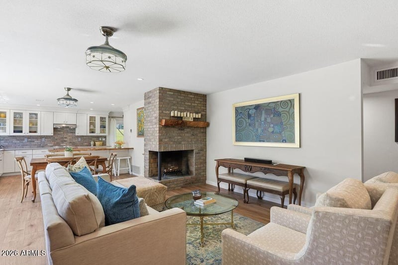 Listing details for 6043 Lewis Ave, Scottsdale, AZ 85257 : Welcome to this beautifully remodeled 3 bedroom 2 bath patio home that blends modern upgrades with today's eco-friendly, solar powered lifestyle. The home is located in a sprawling 10 acre community of green grass and mature trees with beautiful mountain views. Inside, you'll find a bright, neutral, open floorplan with a bricked stacked fireplace, luxury vinyl plank floors throughout, a stunningly appointed kitchen with quartz counters, Bertazzoni Italian appliances and gorgeous live edge island. Both baths are fully remodeled. The split floorplan and inside laundry are a bonus! Every detail has been perfectly curated for a move-in-ready home that feels both stylish and comfortable. Step outside to your expansive covered back patio and large side patio with retractable awning. Savor the Arizona sunsets while taking in the boulder views. Enjoy the benefits of a fully owned solar system for energy efficiency along with an EV-ready two car garage. The community offers a large, heated pool, spa and clubhouse and is minutes to Old Town Scottsdale and Arcadia shopping and eateries, hiking trails, freeways and Sky Harbor airport.