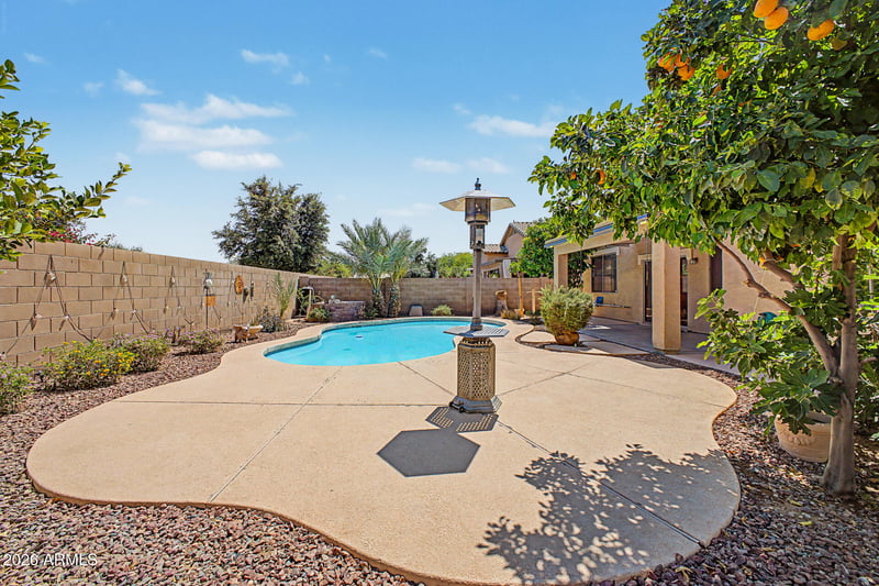 Listing details for 6131 Topaz Pl, Chandler, AZ 85249 : Outstanding opportunity in the Sun Groves Community in Chandler. BRAND NEW A/C, HVAC system (April 2026). Large pool in the backyard with plenty of space for enjoyment and entertaining. Walk into the open & very spacious living area and kitchen with a kitchen island. Tile flooring in all the living areas. Four bedrooms including the large primary bedroom area. The landscaping in the backyard with trees & plants, coupled with the large pool makes the backyard a perfect summer time environment for Arizona. Two-car garage. The highly sought after Sun Groves community features lakes, walking path's, parks & nearby schools, including Basha High School & Navarrete Elementary School. Across the street from Mesquite Groves Aquatic Center. Close to Freeways, Restaurants, Shopping & Entertainment.
