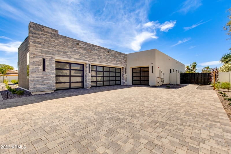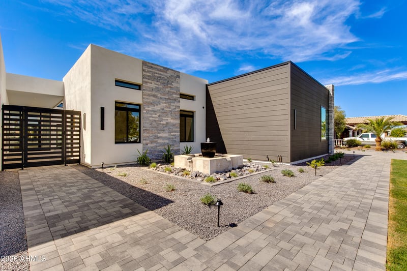 Listing details for 6145 Gold Dust Ave, Paradise Valley, AZ 85253 : An architectural statement of modern desert luxury, this newly constructed Paradise Valley residence blends sophisticated design with effortless livability. Set on a generous lot, the home is defined by clean contemporary lines, soaring ceilings, and walls of glass that invite natural light and frame seamless indoor-outdoor living. At the heart of the home, the show-stopping kitchen is both refined and functional, featuring premium appliances, custom cabinetry, designer finishes, and dual islands ideal for entertaining. Open living and dining spaces flow beautifully to covered outdoor living areas, creating the perfect environment for hosting or relaxing in the Arizona sun. Private guest suites and flexible living spaces provide comfort and versatility, while the primary retreat offers a serene escape with spa-inspired finishes and a true sense of tranquility. The resort-style backyard is designed for year-round enjoyment, complete with a sparkling pool, shaded lounge areas, outdoor kitchen, sports court, putting green and ample space for entertaining under the stars.