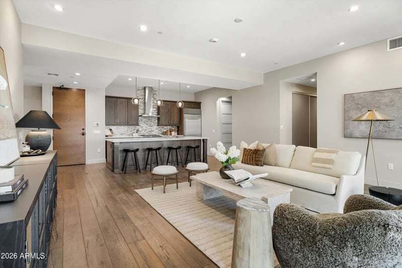 Listing details for 6166 Scottsdale Rd #C3001, Scottsdale, AZ 85253 : Breathtaking views of Camelback Mountain and the iconic Praying Monk from the large patio of this 2 bedroom + den, 2.5-bath home. A split floor plan and both bedrooms are en-suite, plus a versatile office/den. The open-concept great room is filled with natural light and anchored by a wall of stacking glass doors that seamlessly open the indoors to the outdoor living. Residents enjoy 24/7 staff support, a resort-style pool, state-of-the-art fitness center, club room, and dog park, all set within park-like grounds. Ideally located in Scottsdale's most walkable location, with grocery stores, dining, and everyday conveniences just beyond the gates. The Enclave offers the ease of lock and , the leave living, the security of 24/7 staffing and the convenience of living in the heart of Scottsdale.