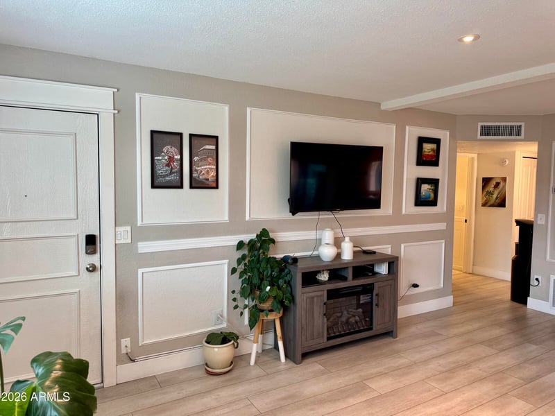 Listing details for 623 Guadalupe Rd #148, Mesa, AZ 85210 : Beautiful, clean and updated unit, looks like a MODEL! ***New AC unit 2024) ***Luxury vinyl flooring in all rooms and halls***New low-E- windows*(2021)**High end stone and tile in custom showers, tile floors, vanities and fixtures in both baths***Quartz kitchen counter tops and breakfast bar; extra cabinets added above existing; SS appliances: stove, MW, DW and refrigerator that stays***New lighting and fans**Fresh paint throughout the unit, decorative trim and designer molding -on walls and around windows ** New tile on the patio floor, decorative panel***Storage off patio**2 community pools/spas** Quiet South end location in the complex***Convenient location -stores, restaurants , services, 2 golf courses within a mile (***Great schools***Freeways I-60 and loop 101 - within 2 miles!!