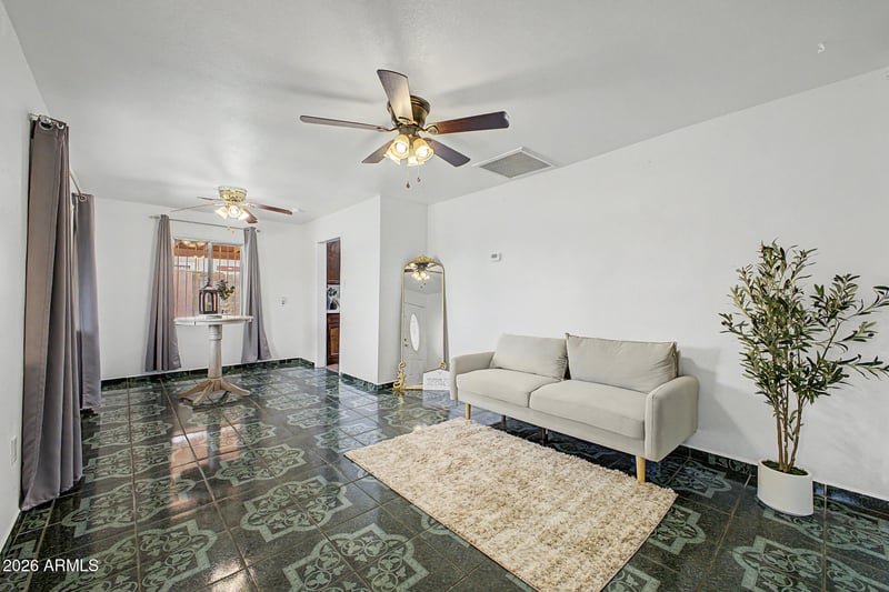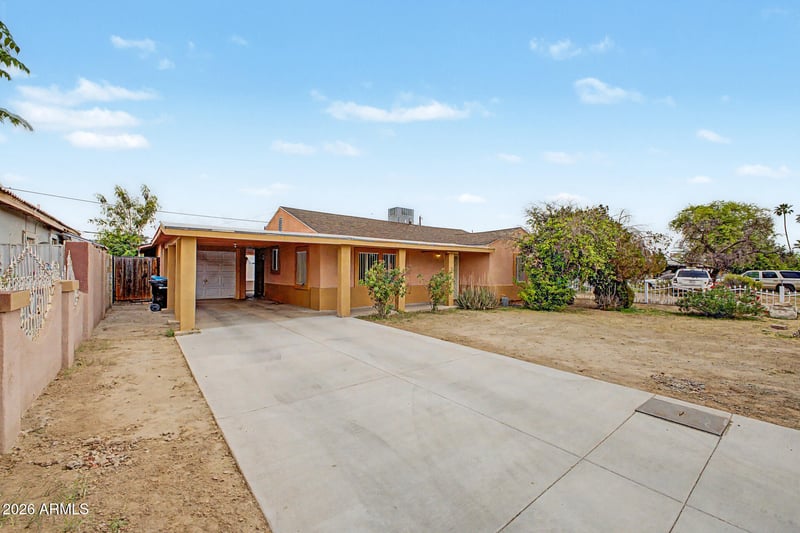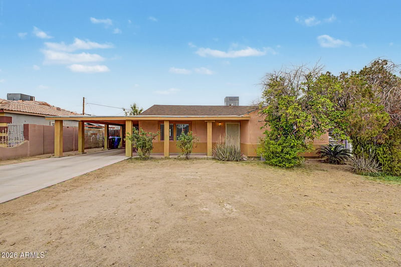 Listing details for 6234 Montezuma St, Phoenix, AZ 85041 : Be the proud owner of this 3-bedroom home fully gated for added privacy! A large front yard and extra-long driveway provide ample parking, complemented by a 1-car garage and additional carport space. Inside, you'll find a desirable split floor plan with tile flooring throughout, neutral paint, and abundant natural light. The kitchen features rich wood cabinetry, quartz counters, and stainless steel appliances. You'll love the huge backyard designed for flexibility and convenience, complete with an RV gate, covered patio, and a rare underground storage room--ideal for extra storage or creative use. This property combines comfort, practicality, and room to grow in one exceptional package! Make it yours before it is sold!