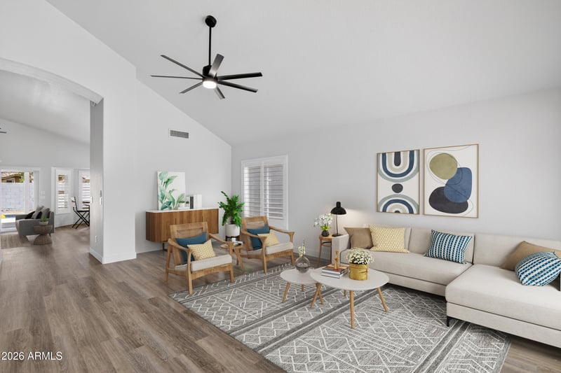 Listing details for 624 Sheffield Ave, Gilbert, AZ 85296 : This beautifully updated 4 bedroom, 2.5 bathroom home offers a highly desirable layout with the primary suite on the first floor and soaring vaulted ceilings that create a bright, open feel the moment you walk in. Recent updates in 2026 bring a fresh, modern touch with all new flooring, interior paint, and updated lighting throughout, giving the home a clean and elevated look. Step outside to your own private backyard with a sparkling pool, perfect for relaxing or entertaining year round. The major systems have already been taken care of, including a newer roof, updated windows, and a newer HVAC system for added comfort and peace of mind. Located just minutes from Gilbert Town Square, along with great shopping and dining options, this home combines thoughtful updates, a functional layout, and an unbeatable location.