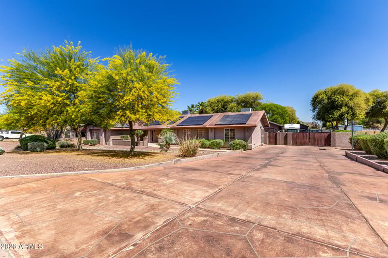 Listing details for 6241 186th Ave, Waddell, AZ 85355 : This single level home is situated on over an acre of lush green grass, and trees with a sparkling fenced pool surrounded by palm trees - your own private oasis.. The home features open expansive living spaces with a living room, family room and an Arizona room, you have lots of options for formal or casual living.
