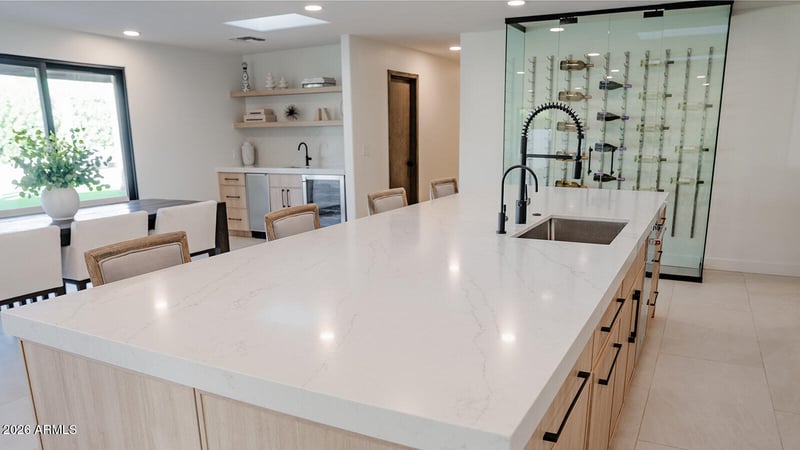 Listing details for 6250 Charter Oak Rd, Scottsdale, AZ 85254 : Situated in the highly desirable North Shea Estates and offering the freedom of no HOA, this fully renovated corner-lot estate is a rare opportunity to enjoy luxury living on just over half an acre—crafted for both grand-scale entertaining and everyday comfort. Spanning 3,338 square feet of refined living space, the home features 5 bedrooms and 3.5 bathrooms, including an elegant powder room for guests. The thoughtfully designed open-concept floor plan creates seamless flow throughout, highlighted by expansive sliding glass doors that open to the resort-style backyard. ((CONTINUED)) The chef's kitchen is a showpiece, filled with natural light from skylights and anchored by a large statement island. Premium appliances include a Sub-Zero refrigerator and Wolf range, complemented by a butler's pantry with sink, wet bar, and custom wine rackideal for hosting and entertaining in style. The owner's retreat is exceptionally spacious, offering a luxurious bedroom with direct access to the backyard, an oversized spa-inspired bathroom, and an impressive walk-in closet that feels more like a private dressing room. Outdoors, the property transforms into a private resort. The heated pool and spa are surrounded by a huge backyard featuring a ramada with a gas fireplace, outdoor shower, and an extraordinary 1,275 square feet of covered patios designed for year-round enjoyment. A pickleball/basketball court adds a dynamic recreational element, while the expansive lot provides privacy and versatility rarely found. Major recent upgrades ensure peace of mind and long-term value, including a brand-new roof (2025), two A/C units (one new in 2025), two tankless water heaters (one new in 2025), and a brand-new septic system. Car enthusiasts and adventure seekers will appreciate the oversized 4-car garage (1,104 sq ft) built to accommodate trucks, along with an RV gate and side parking for additional vehicles, boats, or recreational toys. This exceptional North Shea Estates residence blends modern luxury, expansive outdoor living, and true no-HOA freedoman offering that is both rare and unforgettable.