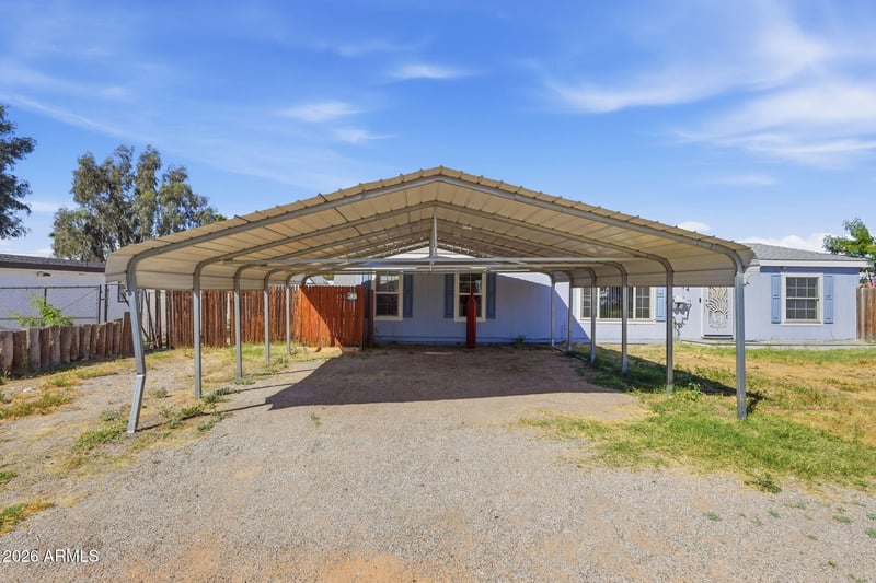 Listing details for 634 97th Way, Mesa, AZ 85208 : East Mesa home on a large owned lot with no HOA! This 1,456 sq ft manufactured home offers 2 bedrooms, 2 bathrooms, plus a versatile den perfect for an office or hobby space. Brand new carpet just installed. The primary suite features a private bath with a walk-in tub. The kitchen provides ample counter space, and the washer, dryer, and refrigerator are included. Enjoy the benefits of owned solar, manual sunscreen on front window, an RV gate, and a spacious backyard with room to entertain. Relax on the covered deck and take advantage of the large storage shed for extra space or workshop. Convenient to freeway, shopping and medical facilities.
