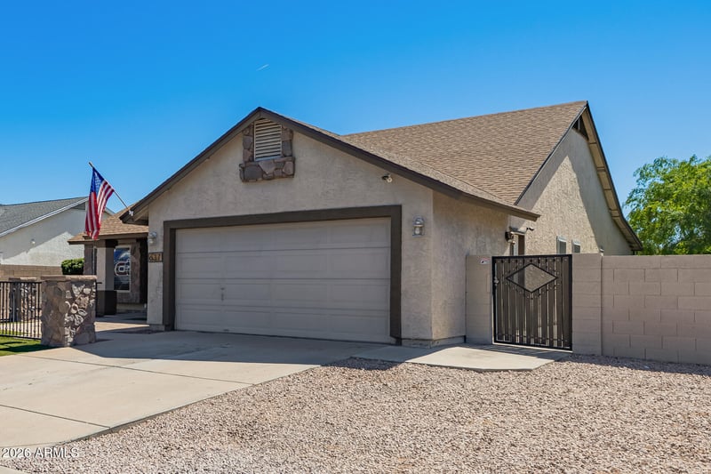 Listing details for 637 Wagner Ct, Gilbert, AZ 85233 : Located in a quiet cul-de-sac, this 4 bedroom / 2 bath home stands out with premium stone accents, an RV gate, and a welcoming front porch. The interior features soaring vaulted ceilings, wood-look flooring, and designer crown molding. A true highlight is the modern kitchen, upgraded with matching white cabinetry, quartz counters, stainless appliances, and a peninsula breakfast bar.