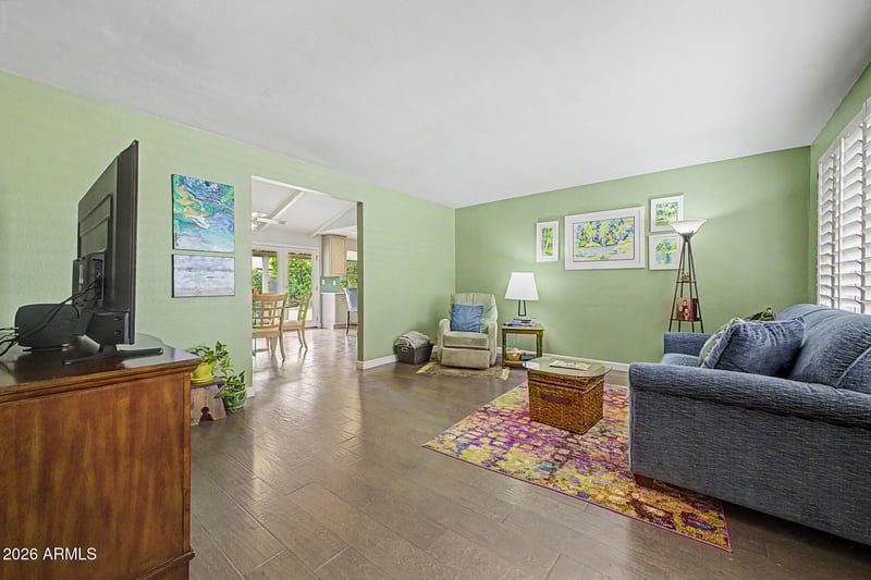 Listing details for 6425 Mission Ln, Glendale, AZ 85302 : Move-in ready and full of updates, this 2 bed, 2 bath Glendale home offers a 2 car garage, no HOA, and a spacious 6,930 square foot lot. The home features updated flooring, remodeled bathrooms, plantation shutters, and a beautifully updated kitchen with modern cabinetry, stainless steel appliances, stylish counters, and a breakfast bar overlooking the main living area. The open dining space with fireplace adds character, while the large covered patio and grassy backyard create the kind of outdoor space that is hard to find. If you are looking for a well-cared-for home with great indoor and outdoor living in a convenient Glendale location, this one is worth a look.
