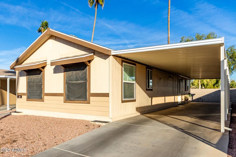 Listing details for 645 67th Ave #24, Phoenix, AZ 85043 : 3-bedroom, 2-bath manufactured home built in 2020, located in a gated community with resort-style amenities. Home features Vaulted ceilings, an open floor plan and no CARPET!!! The kitchen features stainless steel appliances, crown-molded cabinetry, generous counter space, and a center island. The primary suite includes dual closets and a private bath with double sinks. Enjoy community pool, spa, clubhouse, media room, and walking paths. Convenient access to I-10 freeway, shopping, and dining. Financing options available for qualified buyers including ITIN loan options.