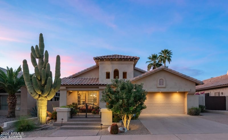 Listing details for 6456 Star Valley St, Mesa, AZ 85215 : Exquisitely upgraded home located on a PREMIUM GOLF COURSE LOT with spectacular golf course and Red Mountain views and breathtaking Sunsets. Nestled in the master planned community of Red Mountain Ranch, this single-level home offers 2031 sq ft, 3 bedrooms and 2 baths. Beautiful travertine flooring, plantation shutters, built-in cabinetry, surround sound and more. The most magnificent saguaro greets you as you enter the private gated courtyard, leading to a custom iron security door that opens into the spacious, open split floorplan with soaring ceilings. Two large living areas offer ample space for gathering with friends and family. The kitchen boasts extended height refinished cabinetry, stainless steel appliances and a kitchen island with extra storage. The primary suite is a true retreat with double doors, private backyard access and windows that frame the relaxing views. The updated primary bathroom features two separate vanities with granite countertops, oversized soaking tub and tiled shower. The primary closet has been transformed into an upscale dressing room with built-in drawers, shelving, shoe racks, and plenty of space for your entire wardrobe. Two additional bedrooms, one with built-in bookcases and desk ready for your home office.