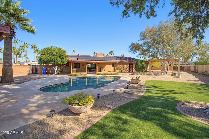 Listing details for 6521 Sweetwater Ave, Scottsdale, AZ 85254 : Fantastic Opportunity in the Coveted 85254 ''Magic Zip Code''! Do not miss the opportunity to own this exceptional home situated on an expansive over half-acre corner lot in one of Scottsdale's most desirable areas. With space, charm & incredible amenities, this property offers the perfect blend of comfort and functionality. Step inside the greatroom, featuring a cozy wood-burning fireplace, ideal for relaxing evenings or gathering with family and friends. The inviting kitchen is designed for both everyday living and entertaining, complete with a gas range and breakfast bar, Enjoy year-round comfort with ceiling fans in every room & energy efficiency thanks to owned solar panels, helping you save on utility costs. The thoughtfully designed primary suite offers a private retreat ... .. featuring an ensuite bathroom with luxurious jetted tub and a generous walk-in closet. Outdoors, the home truly shines. The entertainer's backyard boasts a sparkling pool, charming gazebo, and mature trees creating a private oasis perfect for hosting or unwinding. With three RV gates, a detached carport and a shed converted into a workshop, there is ample room for toys and projects. All of this in a prime location just minutes from premier dining, shopping and entertainment. This is a rare opportunity to own a spacious property with incredible versatility in the highly sought after "85254" zip code.